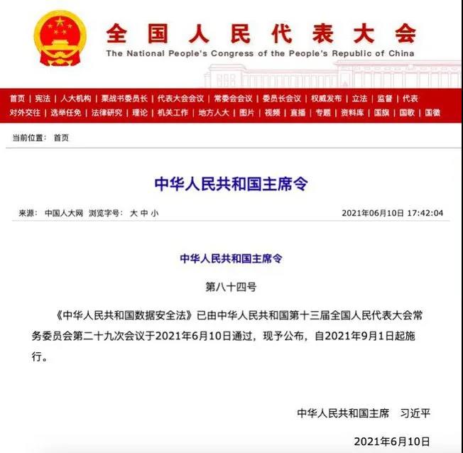 《中華人民共和國數(shù)據(jù)安全法》將自2021年9月1日起施行。生效之后,《數(shù)據(jù)安全法》將與《網(wǎng)絡安全法》及正在立法進程中的《個人信息保護法》一起,全面構筑中國信息及數(shù)據(jù)安全領域的法律框架。